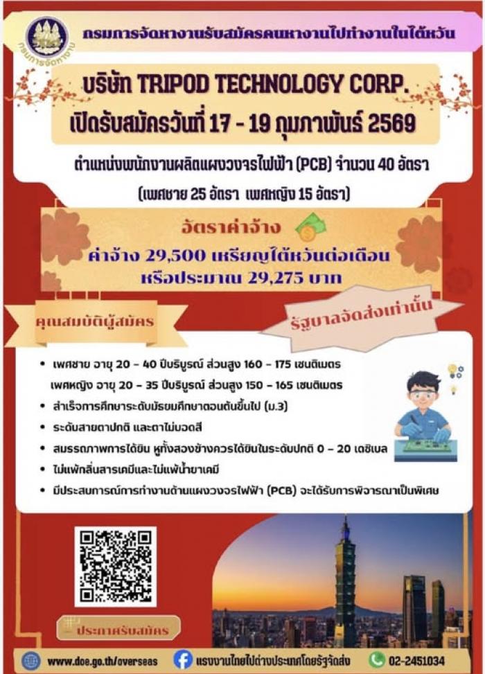 ประชาสัมพันธ์...ใครกำลังรองานต่างประเทศ โอกาศดีสำหรับใครกำลังมองหางานต่างประเทศ กรมการจัดหางาน ประกาศรับสมัครคนหางานไปทำงานในไต้หวัน